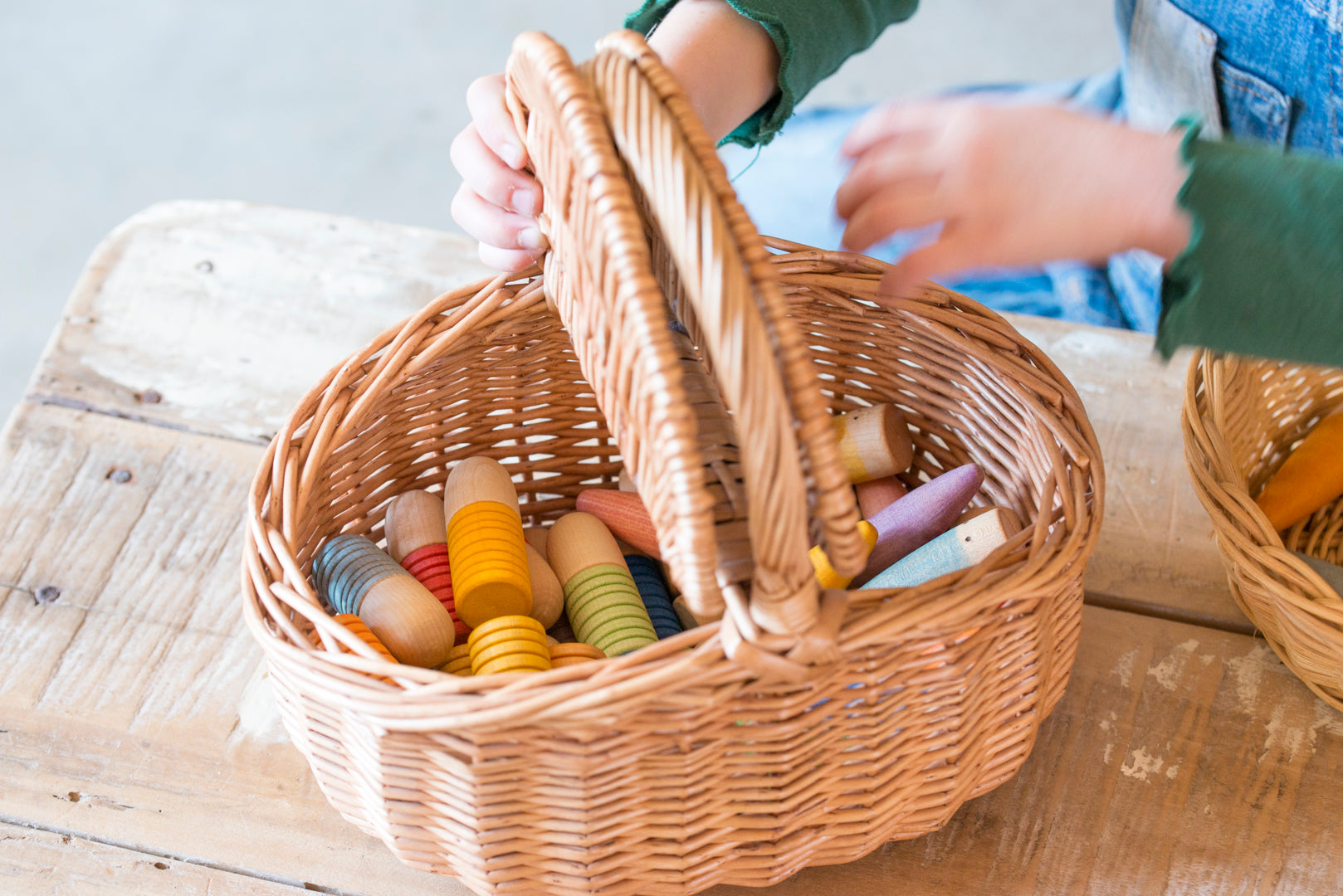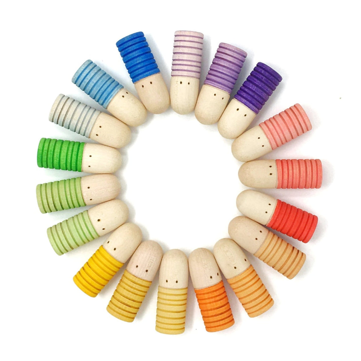 A set of 18 Brots in a rainbow of colours from Grapat. Handcrafted tactile wooden figures which can be used for anything from characters to animals to landscapes and will be a wonderful addition to your loose parts play.