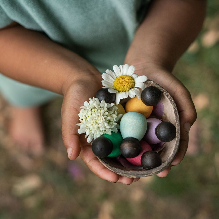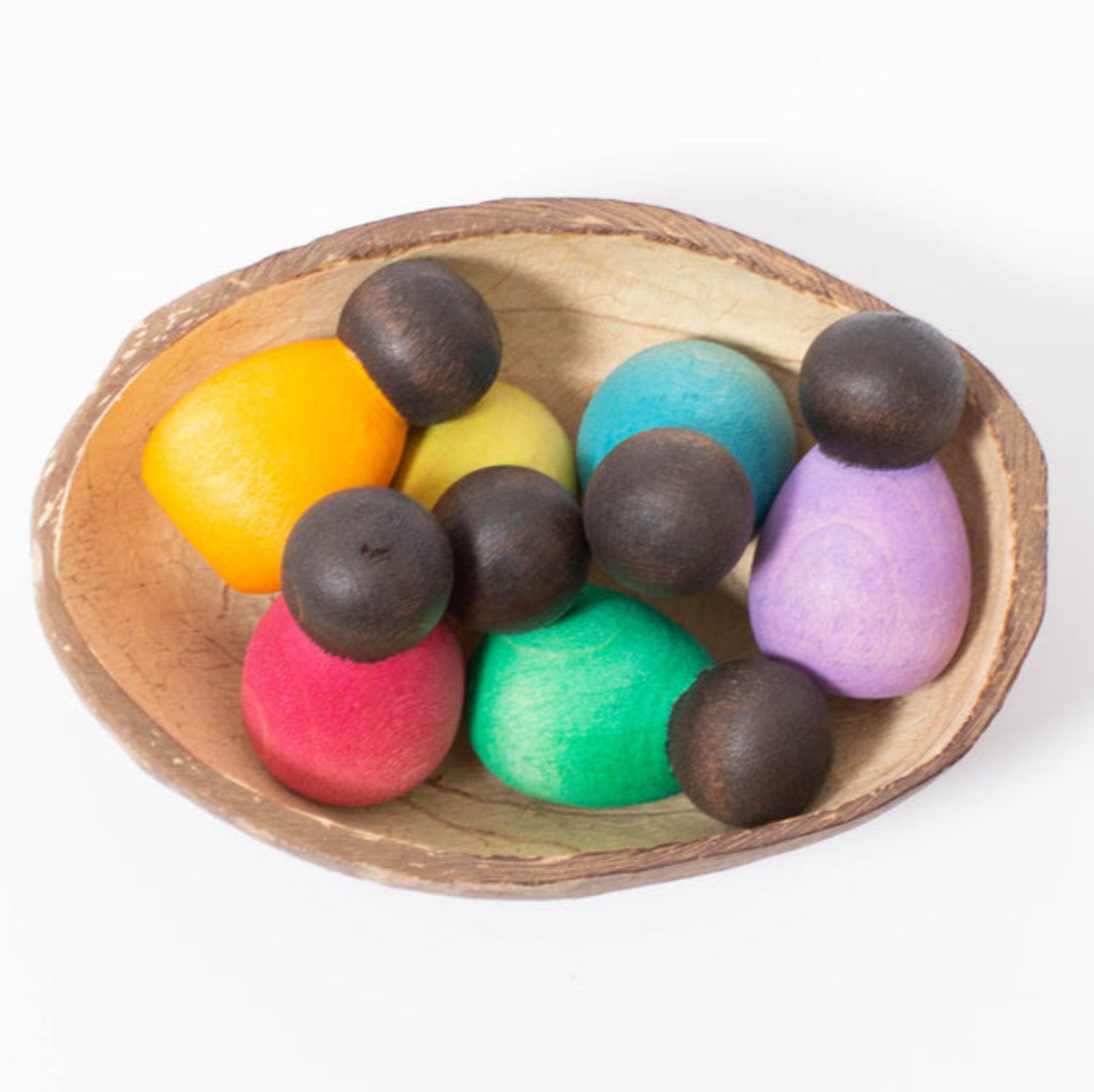 A perfect set of miniature Nins in a beautiful array of colours which, can be combined with classic Nins as part of family story-telling or played with on their own. However you choose to play with them, this is a must have set for your loose parts play.