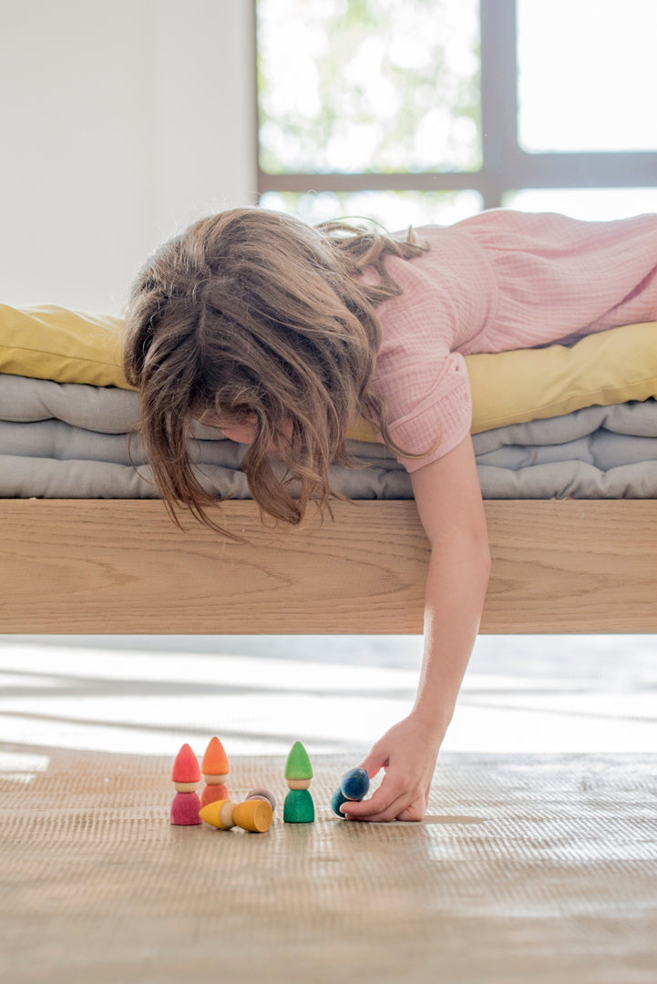 A set of 6 Rainbow Nin Tomtens from Grapat. Cute handcrafted tactile figures which will perfectly compliment your Nins collection and loose parts play.
